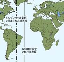 2、判断题 教皇子午线(图所示)是1493年5月在罗马教皇亚历山大六世仲裁下,将亚速尔群岛和佛德角群岛以西100里格的子午线(实线)作为西班牙和葡萄牙瓜分殖民地的分界线。1494年,西葡两国又缔结条约,把这条线向西移动270里格(虚线)。对该子午线表述正确的是