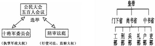 (1)制度(模式):雅典的民主制度、中国专制主义中央集权制度(唐朝的三省六部制)(2分)