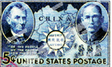 ②邮票设计者将“民族、民权、民生”与“of the people,by thepeople,for the people”并列,表明中国曾经追求过“美国式”的民主