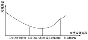 材料三 下图显示了工业化以来世界经济发展与环境质量之间的关系。