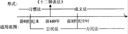 参考答案:C 本题解析:“陶片放逐法”并不是雅典民主政治黄金时代到来的重要标志,只是雅典维护民主政治的手段,当然,其有利也有弊;B、D两项并不能从材料中反映出来。 本题难度:一般 2、判断题 《十二铜表法》的积极意义在于 参考答案:B 本题解析:《十二铜表法》内容广泛,条纹清晰,一定程度上限制了贵族的特权,保护了平民的权利, 但维护的仍是奴隶主贵族的权利,因此选B. 本题难度:一般 3、判断题 根据下图所示,下列关于罗马法的说法错误的是 参考答案:C 本题解析: 本题难度:一般 4、选择题 学者米健认为,“由于私有制进一步发展,人的私有意识大大加强,商品货币经济的深度与广度都已今非昔比。其内容之丰富,形式之多样远非市民法(即公民法)所能逮及。……由于社会的进步,市民法扩大为世界性的法律,已势在必行。”材料最能说明 |