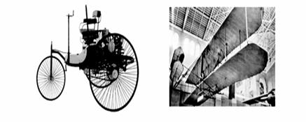 图二?三轮汽车 莱特兄弟发明的飞机