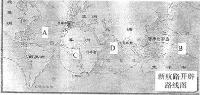 本题解析:1488年葡萄牙人迪亚士率船队到达非洲西南端的好望角。A是哥伦布的航线,B是麦哲伦的航线;D是达·伽马的航线