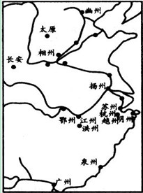 图2 唐朝商业城市分布图