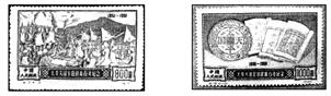 材料一 《金田起义百年纪念》纪念邮票之一 (下左图)