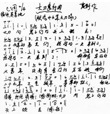1、判断题 下图是一首著名歌曲作品的手迹,该歌曲广泛流行于中国近代某一时期,表达了中国军民团结一致、英勇抗战的心声。该歌曲最有可能创作于