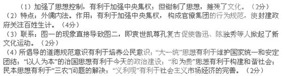 (2)结合材料二及所学知识,概括封建统治思想的特点及其对于封建统治的作用。(4分)