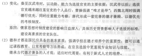 (2)根据材料并结合所学知识,简要评述清末对“德”、“才”的新认识。(10分)