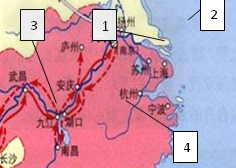 5、判断题 太平天国运动北伐出师的地点是图中的?