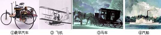 本题解析:最早的是马车,然后是第一次工业革命后以蒸汽为动力的汽船,再是第二次工业革命后出现的1896年最早的汽车,1903年最早的飞机。