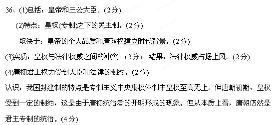 (4) 据上述材料,指出唐初君主的权力受到哪些方面的制约?结合我国封建制度的政治特点谈谈你对这一现象的认识。(4分)