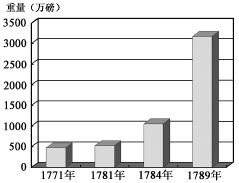 2、判断题 右图是十八世纪七八十年代输入英国的原棉重量变化示意图,导致这种变化的主要原因是