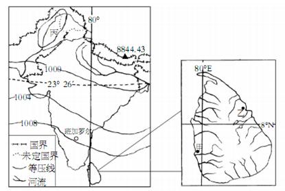 3、综合题 下图是南亚部分地区某时海平面等压线分布图,结合相关材料回答下列问题。(20分)