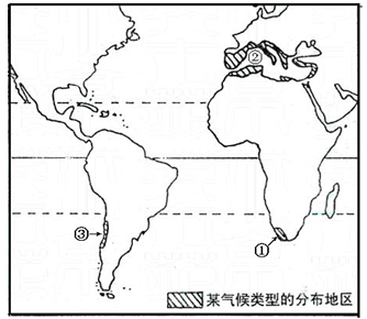 1、单选题 读世界某气候类型局部地区分布示意图,该气候的分布地区中,①地区的分布最高纬度较低,其主要的影响因素是( )