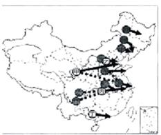 A.①洋流,增温增湿 B.②洋流,降温减湿 C.③洋流,加大同纬度不同海区温差 D.④洋流,加大沿岸地区降水量 5、单选题 该图是“我国西电东送基本格局示意图”。读图完成问题。 |