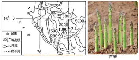【小题1】依据图中的纬度、海陆位置、地形等特征,分析出该地气温高,蒸发旺盛,又位于东南信风的背风坡,且受寒流降温减湿作用的影响,所以干旱。该地气候干旱和“厄尔尼诺”无关。