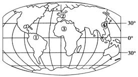 小题1:①②③④四地的气候主要由海陆热力性质差异造成的是 (  )