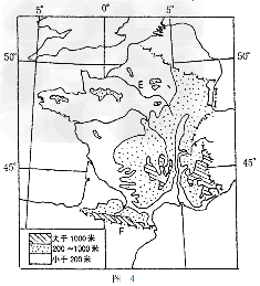 3.图中E河流域内的相对高度(H)最大可以达到(单位:米)?