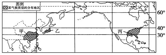 3、综合题 读某气候类型的分布地区图,分析回答下列各题。(6分)
