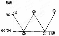 3、单选题 晨昏圈与北半球纬线圈相切于H点,下图是H点纬度的年变化示意图,读图回答