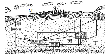 5、单选题 下图为“地壳物质循环简略示意图”,读图完成1—2题。
