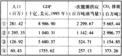 5、单选题 ? 下表为中国、日本、美国、法国四个国家2000年燃烧化石燃料排放二氧化碳的主要指标。读表,回答1—3题。