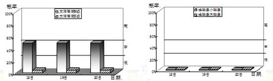 【小题1】从图中可以看出,太阳耀斑M级概率中等,A正确;太阳耀斑X级概率中等,C错误;地磁暴小磁暴和大磁暴概率都低,B、D错误。