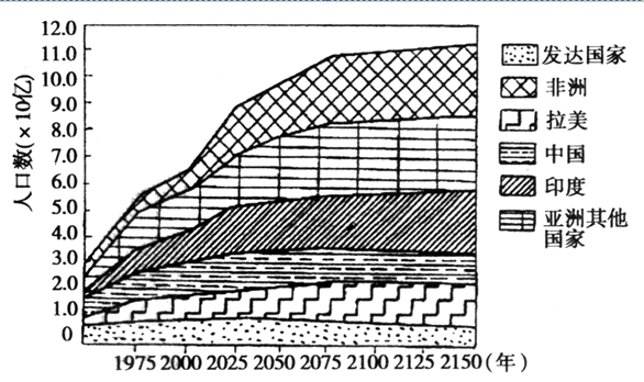 2、单选题  下图为“世界人口推算图”。读图完成下题。