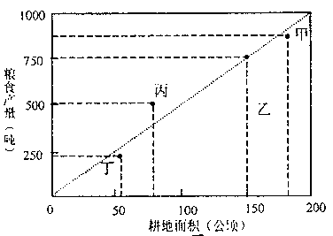 1、单选题  下图为四个地区农业人口平均每100人拥有的耕地面积和粮食年产量。读图回答各题。