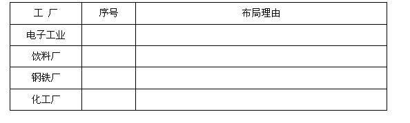 (1)计划在城市建设电子工业基地、饮料厂、钢铁厂、化工厂,请在下表中按要求填上适当内容