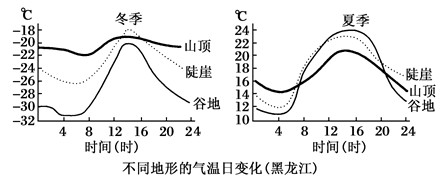 5、单选题 读下图,回答1—2题。1、下列叙述中正确的是[? ]A.一天中最高气温出现在谷地B.山顶气温日变化最小C.山顶冬季日温差大于夏季日温差D.山谷冬季日温差远大于夏季日温差2、导致一天中最低温出现在山谷的主要原因是[? ]A.山谷地形闭塞,降温快B.夜间吹谷风,谷地散热快C.夜间吹山风,冷空气沿山坡下沉集聚在谷地D.谷地多夜雨,降温快
