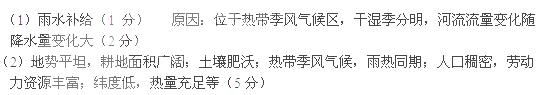 (2)水稻是该国的主要粮食作物,主要分布在L河中下游地区和高原东北部,请评价该地区种植水稻的有利条件。