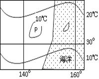 A.P处为一座山,山上有冰川分布 B.P处气温在10℃以上 C.P处地势低洼,沙漠广布 D.P处为一座山,山顶海拔可能超过1000米 |