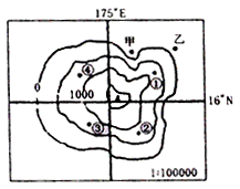 3、单选题 下图为一火山岛,读图回答1—2题。