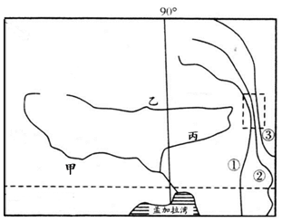 (3)图中丙地主要的经济作物是___________________,适宜该经济作物生长的自然条件是________________