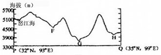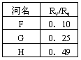3、综合题 下图所示的剖面,切过F、G、H三条大河的河源段。河源区径流(Ry)与全流域径流(Rq)的比值如表所示。