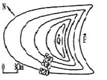 4、单选题 读下图,图中用等高线表示一种风力堆积的地表形态,回答下列问题。
