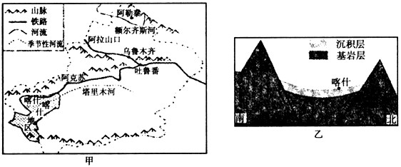 (2)乙图中喀什所处的地貌属于_______________,它是地球________________作用的结果。
