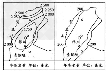材料二“银川平原湿地分布图”和“年蒸发量和年降水量分布示意图”?