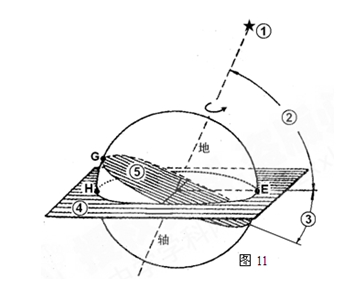 (1)恒星①是?星,平面④的名称是??,平面⑤的名称是??。(3分)