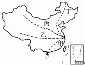4、单选题 家住上海的王小华利用暑假游览祖国的大好河山,他设计的游览线路如图所示。据此完成问题。