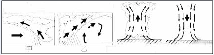 小题2:结合上题分析,甲为冷锋,冷锋过境气温下降,气压升高,A错误;锋面只能与气旋结合,而形成锋面气旋,B错误;秋高气爽是受反气旋控制而形成,C错误;伏旱是受反气旋控制而形成,D正确。