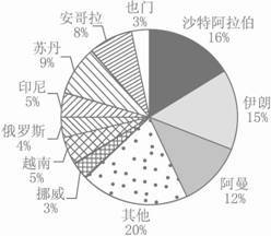 图2 我国从世界各主要国家和地区进口石油的比重示意图