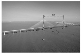 1、单选题 下图显示的长江大桥创造了多项世界记录:最大主跨(1088米)、最深桥基、最高桥塔和最长拉索。建造该桥经历的挑战气象条件差(面临台风等的威胁)、水文条件复杂(江面宽,水深,浪高)、基岩埋藏深(达300米)、航运密度高等。据此完l—2题。