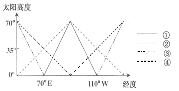 | 小题2:如果该季节北印度洋洋流自东向西流动,则下图中表示此时赤道上太阳高度分布规律的曲线是?