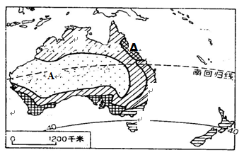 A.长时间受副热带高压的控制 B.受到西澳大利亚寒流的影响 C.受到干燥的东北信风的影响 D.位于大分水岭的背风坡 |