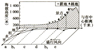 4、单选题 读“某特大城市及其周边地区各类土地的付地租能力与该地区地形剖面示意图”。读图回答1~2题。