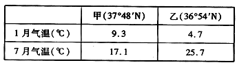 (2)据表比较甲、乙两城市的气温差异,并解释其原因。(14分)