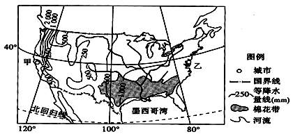 (1)描述美国西部年降水量的空间分布特点,并分析其成因。(12分)?