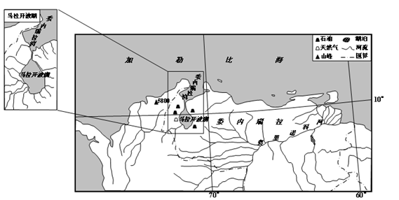 4、综合题 图是南美洲局部示意图。图中委内瑞拉是世界重要石油生产与出口国之一,石油资源主要分布在西部的马拉开波湖地区以及委内瑞拉的东部和中部等地区。读图回答下题。